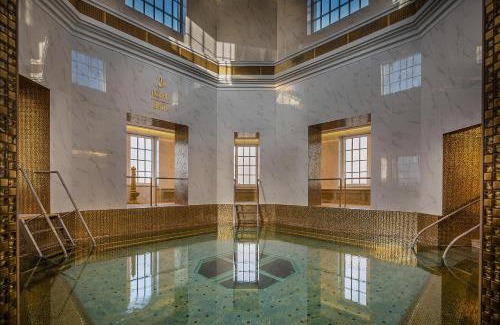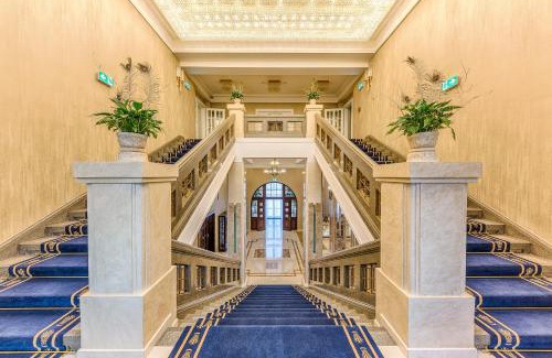 Reconstructed in 2017, Royal Palace offers a luxurious accommodations in the heart of Turčianske Teplice spa town and right by the park. Various treatments and services with a focus on cardio-rehabilitation are available directly in the therapeutic center. Thanks to the water healing effects, the thermal healing mineral water is used for treatment of musculoskeletal diseases, neurological, urological, digestive, and as a support treatment of oncological diseases. Each room at Royal Palace features a flat-screen TV with satellite channels, a mini-bar, a telephone, a radio, and a bathroom. Free WiFi is available in all areas. Most of the room also come with a balcony. Other facilities provided by the hotel include a balneotherapy, a curative and rehabilitative institute INCARE, a winter garden, the Royal summer terrace, a private lounge as well as the Kursalon ballroom suitable for conferences and events up to 200 people with a stage and a gallery. The hotel is directly connected to the Turčianske Teplice Aquapark. Guests can enjoy drinks in a lobby bar offering a variety of high quality drinks, snacks and desserts or relax in the Kolonáda bar offering views of the hotel surroundings. Meals are served in the Sissi Restaurant serving international cuisine and providing high quality wines from all over the world in local vinoteque. Here you can also find a cigar lounge and enjoy a glass of cognac or whiskey. You can engage in various activities, such as cycling and hiking. The nearest airport is Piesťany Airport, 50 mi from the property.