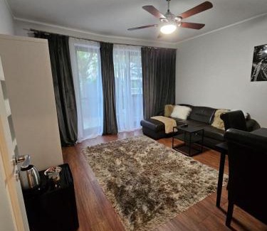 Royal Place 2 bedrooms Apartment Wilanów offers accommodations in Warsaw, a 9-minute walk from Wilanow Palace and 4.9 miles from Lazienki Palace. Complimentary Wifi is available throughout the property and private parking is available on site. The accommodation features an elevator and a mini-market for guests. The apartment consists of 2 separate bedrooms, 1 bathroom with a hair dryer, a seating area, and a living room. Towels and bed linen are offered in the apartment. For added privacy, the accommodation has a private entrance and is protected by full-day security. Guests can also relax in the garden or on the sun terrace. Frideric Chopin Monument is 4.9 miles from the apartment, while Royal Łazienki Park is 5.2 miles from the property. Warsaw Frederic Chopin Airport is 6.2 miles away.