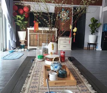 18 miles from Ta Cu Moutain in Lagi, Ruby House beachside Ocean Hill features accommodations with access to a public bath. This beachfront property offers access to a balcony, darts, free private parking, and free Wifi. The villa also offers facilities for disabled guests. Featuring a terrace and garden views, the spacious villa includes 3 bedrooms, a living room, flat-screen TV, an equipped kitchen, and 2 bathrooms with a bidet and a shower. Towels and bed linen are available in the villa. The property has an outdoor dining area. During warmer months, you can make use of the barbecue facilities and eat on the private patio. Guests at the villa will be able to enjoy activities in and around Lagi, like hiking. Outdoor play equipment is also available at Ruby House beachside Ocean Hill, while guests can also relax in the garden. Ke Ga Lighthouse is 22 miles from the accommodation. Tan Son Nhat International Airport is 97 miles from the property.