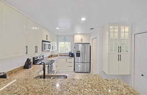 Escape to Ruby's Tropical Oasis and discover the best in Indoor-Outdoor living. This newly renovated 3 bedroom-2 bathvacation home features a spacious covered lanai and heated pool. Surrounded by lush plants, palms, and a large fenced-in backyard. Nestled in a peaceful-upscale Southwest Cape Coral neighborhood. This home is just under a mile from Cape Harbour Marina, Camelot Park and a variety of shopping, dining, and grocery options, making it the perfect home base for your getaway. This newly renovated home has everything that you need to wine & dine by the pool or spend the day at the beach, conveniently located less than one mile from Publix, Cape coral parkway & Cape harbor marina where you can enjoy numerous shopping, dining & live music options such as 239 Prime, Lobster lady, Overtime Sports Pub, Rum Runners, Fathoms, The Oyster Bar, Boat Rentals, Dolphin Watch Tours. Note: All bedrooms, the family room and lanai are equipped with 4K Smart Televisions.