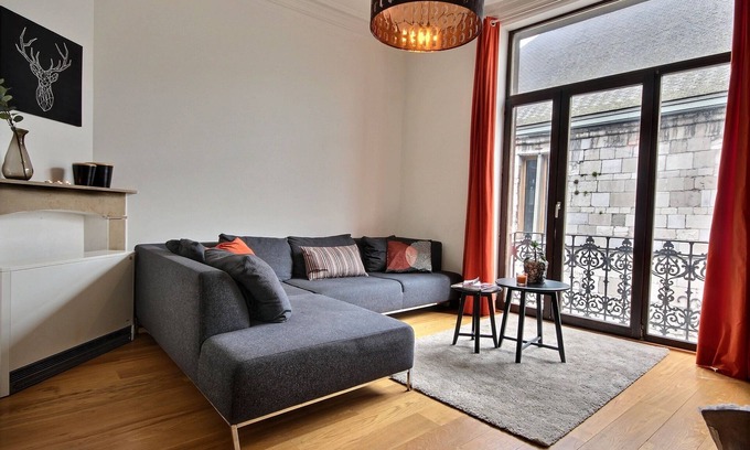 The duplex is ideally located in a typical Liège house on a pedestrian street in one of the most pleasant areas of the city: the historic heart.Here you will be a 3-minute walk from the Place du Marché, Place St Lambert and their many shops, restaurants and bars…