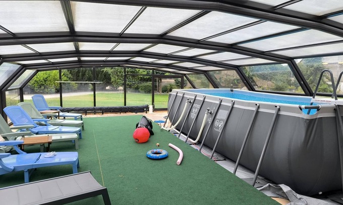 Swimming pool with removable high shelters (usable from 1 April to 15 October. Can be heated during this period on request and for an extra charge).