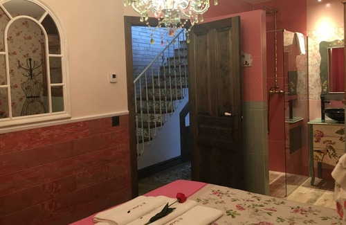 double with bathroom, 1 and single bed with bathroom. BUHARDILLA PLANT: 1 Habit. marriage with bathroom and 2-seater daybed and bathroom with classic bathtub, 1 room. 7 seats, a bathroom. (* extra beds *) Personalized rooms with different decorations, BATHROOM IN ALL ROOMS. Thermostatically self-regulating heating. Firewood without limitations for Fireplace and Barbecue. Top quality utensils. 2 SMART TV 50 ". Blue-ray player Netflix, movies and series streaming on smartTV. Diversity of board games latest editions: Trivial, Party, Monopoly, Bingo, etc. Table football, game table, blackboard, paintings, books and much more.