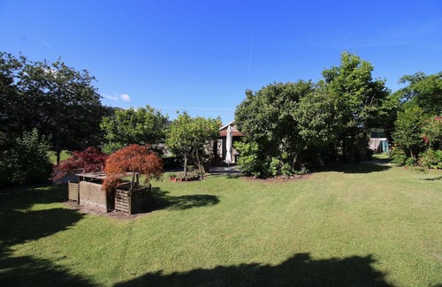 The house offers 2 bedrooms, living and dining room, kitchen, pool and lush gardens with fruit threes.