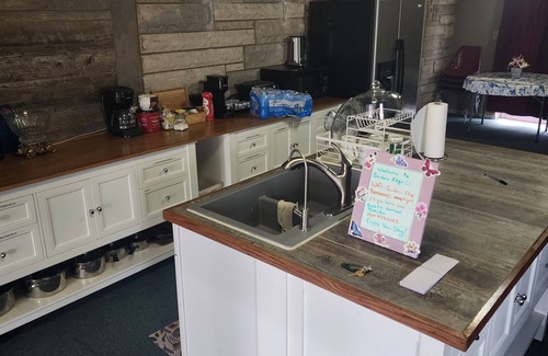 Plenty of space for your crowd! Hottub, firepit, 2 stocked kitchens, and plenty more! Clean, and peaceful. Catering available as well as karaoke or dance parties in the ballroom. Jetted tub in the suite and laundry service for longer stays. We are a work in progress so there might be lumber or brick on the property at times a week as renovations in progress. We will make sure they do NOT impact your stay. We are on well water. It's triple filtered and has salt softener in it. It's going to be harder than tap and a little cloudy in the showers and toilets. This is normal. No security deposit required. If you break it, fix or replace it. We're pretty easy going about rules.