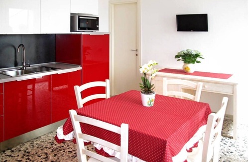 Three-room apartment consisting of bedroom with large double bed, bedroom with bunk bed for 2 people, living room with sofa bed for 2 large people, kitchenette equipped with crockery and appliances such as refrigerator, dishwasher, induction plate, microwave, coffee machine American, kettle, toaster etc .. Full bathroom with shower. EQUIPMENT: 22 "color TV with digital terrestrial and satellite, air conditioning (hot / cold), WI-FI internet access, iron with ironing board and hairdryer. Paid services: sheets for beds and towels. Possibility n. 1 animal following an additional 15 euros, daily cleaning 20 euros. On reservation: child seat, cot with barriers for children and additional camp bed.