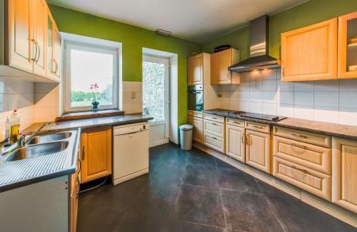 19 miles from Barvaux in Ambly, Rustic Estate with Sauna provides accommodations with access to a sauna. 19 miles from The Labyrinth of Barvaux-sur-Ourthe and 20 miles from Adventure Valley Durbuy, the property features a garden and barbecue facilities. Free Wifi is available throughout the property and The Feudal Castle is 18 miles away. Providing garden views, this vacation home also offers a cable TV, a well-equipped kitchen with a dishwasher, an oven, and a microwave, as well as 2 bathrooms with a hot tub. There's also a seating area and a fireplace. Hamoir is 25 miles from the vacation home, while Sy Train Train Station is 26 miles away. Liege Airport is 38 miles from the property.
