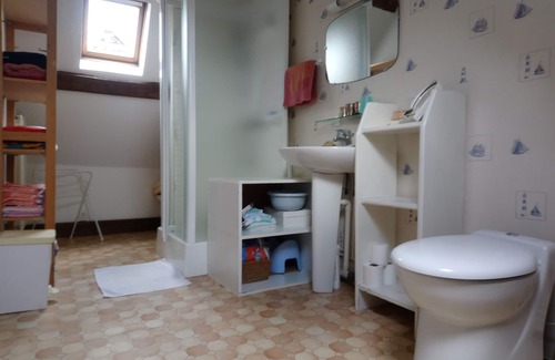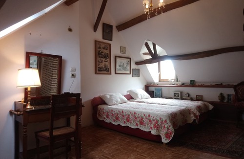 in a rustic farmhouse on the first floor, a bedroom with suite, adjoining bathroom, for 4 people: a large bed for couples and 2 twin beds. parking in the private courtyard (with possibility of garage).
