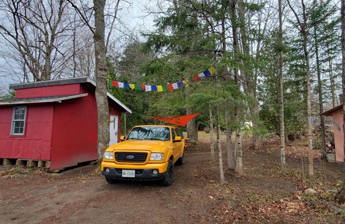 Come prepared for camping with the comfort of a cabin. Limited power provided by a Bluetti power box. Cook on the fire or bring a campstove. Stove available for additional fee. Very cozy double bed! There is no shower on site, but there are showers at local parks and travel gas stations in town.