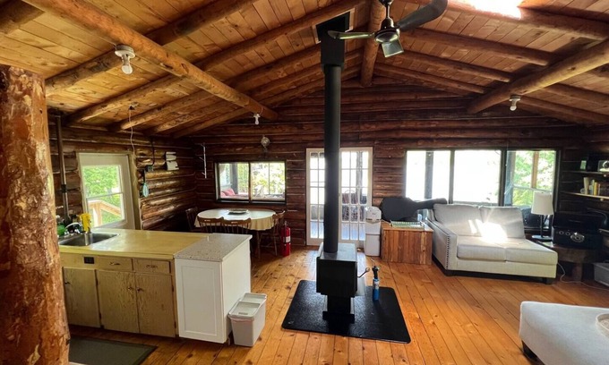 Rustic Log Cottage in Woodchuck Bay on Lake of the Woods with a Sand Beach is located in Northern Ontario. Rustic Log Cottage in Woodchuck Bay on Lake of the Woods with a Sand Beach provides accommodation, featuring Designated Smoking Area, Balcony/Terrace, Bedding/Linens, among other amenities. This Cottage features Designated Smoking Area, Balcony/Terrace, Bedding/Linens, to make your stay a comfortable one.