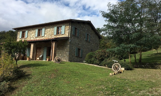 A luxurious retreat in the tranquil woods of the Tuscan countryside away from everything, secluded but only a 15 minute drive from the lively town of Arezzo, ideal for families and groups of friends. This artfully restored Tuscan farmhouse in the Casentino Valley boasts meticulous attention to detail with modern appliances and historical accents surrounded by 40 hectares of forest. (Please note that the last few kilometers to arrive at the house are gravel, and not always in perfect condition. For your comfort and ease, we recommend a vehicle that sits higher to the ground - a Fiat Panda or the like works like a charm).