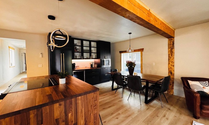 Welcome to a one-of-a-kind rustic-modern retreat near downtown Moscow and the University of Idaho. Thoughtfully designed with locally sourced wood accents, this property blends historic charm with modern amenities to offer the ultimate experience of relaxation and luxury.