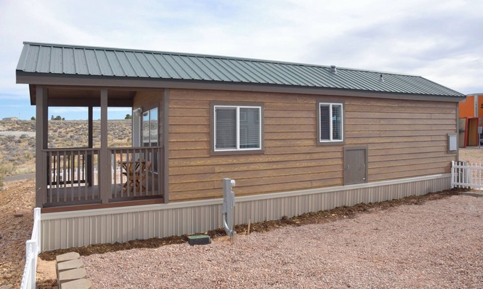 Welcome to our charming tiny home near Lake Powell! Adjacent to the lively Pilot Travel Center, our retreat embraces the area's vibrant spirit. Experience the dynamic energy of the highway, complementing the tranquil surroundings. Just off Highway 89, moments from Wahweap Marina and Glen Canyon Dam, our cozy oasis combines comfort, convenience, and natural beauty.