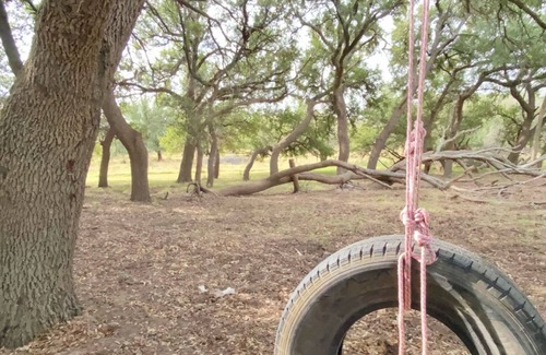 Full hookup camp site at central Texas working cattle ranch. CAMPER NOT INCLUDED. Fish, ride the mountain bike trails, visit a nearby town or just relax in a shady hammock with a book in the grove of live oaks in the middle of this very private retreat on 210 acres.