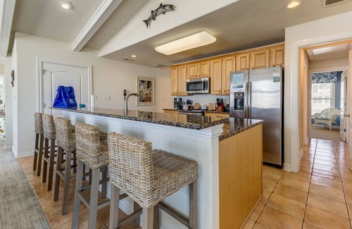 A great house for active families! Outside the crew can enjoy the private pool or some friendly competition playing volleyball, cornhole, or horseshoes. Easy access to the beach across the street is convenient for any equipment or toys you wish to bring or rent for surfing, SUP, boogie boarding, or sunning to enjoy your long days on the beach. When you're ready to relax, you have hundreds of square feet of deck for gazing at the ocean and sunsets over the bay, enjoying your favorite beverage at the new tiki bar, or soaking in the hot tub to relax and wind down.