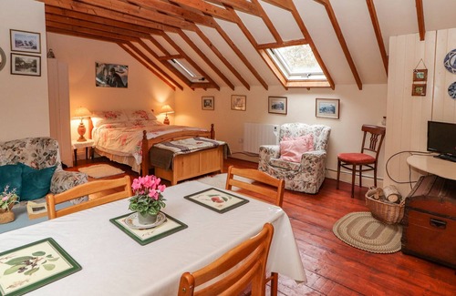 Ryan's Loft is a wonderful, cosy romantic retreat, situated on a working farm with Connemara ponies in County Tipperary, half a mile from Ardfinnan. The property provides studio accommodation consisting of a double bed, a kitchen, a dining are and a sitting area. There is also a shower room, and outside, a front shared courtyard and off road parking for two cars. Set in a lovely, rural spot, with just a 10-minute walk to the shop and pub, Ryan's Loft is perfect for a couple's getaway. This property does not accept booking over 3 weeks in duration.