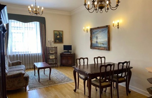 2-room apartment 70 m2 on 2nd floor. Beautiful and stylish furnishings: living/dining room with 1 sofabed and TV. 1 room with 1 double bed. Kitchenette (4 hot plates, oven, dishwasher, toaster, freezer, electric coffee machine) with dining table. Bath/WC. Facilities: washing machine, iron. Internet (WiFi, free). Please note: apartment courtyard side. Non-smokers only. Smoke alarm. Sleeping place for 3 persons is a pneumatic mattress (1,10x2,0 m, height 30 cm) or sofa.