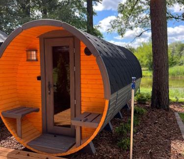 BathroomBody soap, Bathrobe, Hairdryer, Slippers, Toilet paper, Private bathroom, Shower, TowelsGeneralAir conditioning, Trash cans, Private entrance, Ironing facilities, Heating, Hardwood or parquet floorsOutdoorsBarbecue, Outdoor dining area, Terrace, Balcony, Outdoor furnitureKitchenKitchenware, Coffee machine, Stovetop, Oven, Wine glasses, Refrigerator, High chair, Kitchen, Dishwasher, Dining table, Electric kettle, Microwave, ToasterLiving AreaSofa, Sitting area, Dining areaMedia & TechnologyFlat-screen TVViewView, River view, Garden viewActivitiesSaunaBedroomLinens, Wardrobe or closetBuilding CharacteristicsDetachedRoom AmenitiesClothes rack, Sofa bed, Socket near the bedFood & DrinkBottle of water |