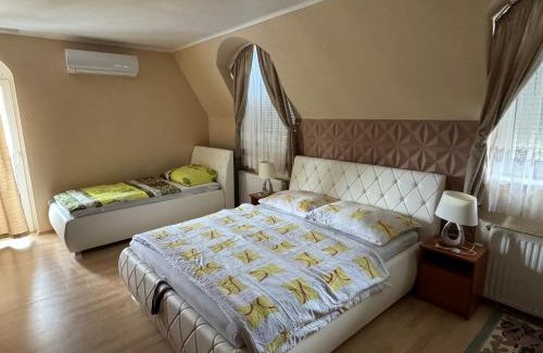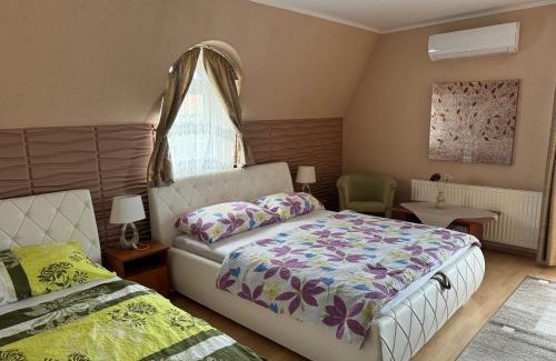 Providing a garden, Sárga-Kék ház provides accommodations in Vonyarcvashegy. This property offers access to a balcony, free private parking, and free Wifi. Guests can access the homestay via private entrance. Featuring a terrace, the accommodation offers air conditioning and has a flat-screen TV and a private bathroom with a bath or shower. Every room includes a private pool. The rooms are equipped with heating facilities. Guests can relax near the outdoor fireplace at the homestay. Vonyarcvashegy Beach is a 16-minute walk from the homestay, while Thermal Lake Hévíz is 7.4 miles away.