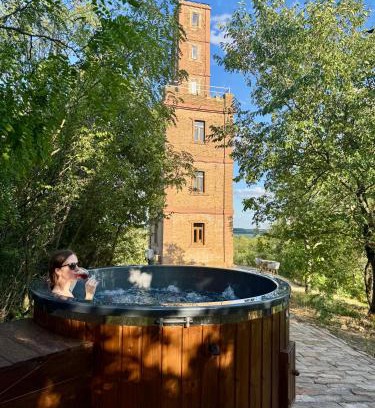 Offering a garden, Söréttorony - A jakuzzis erdei szállás offers accommodations in Kölesd. This property offers access to a patio, free private parking, and free Wifi. Guests have access to a hot tub and open-air bath. Featuring river and garden views, this recently renovated vacation home features 1 bedroom and opens to a balcony. Featuring a terrace with pool views, this vacation home also includes a flat-screen TV, a well-equipped kitchen with a toaster, a fridge, and a stovetop, as well as 1 bathroom with a shower and a hair dryer. Additional in-room amenities include wine or champagne. Pécs-Pogány International Airport is 70 miles from the property.