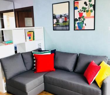 BathroomBathtub or shower, Toilet paper, Hairdryer, Towels, Bathtub, Private bathroom, Toilet, Body soapMedia & TechnologyTV, Flat-screen TVGeneralTile/Marble floor, Heating, Hypoallergenic, Hardwood or parquet floors, Ironing facilities, Trash cans, Iron, Private entranceKitchenElectric kettle, Cleaning products, Dining table, Washing machine, Stovetop, Refrigerator, Kitchenware, Wine glasses, Oven, Dishwasher, Kitchen, KitchenetteOutdoorsBalconyLiving AreaSofa, Sitting area, Dining areaViewView, City view, Landmark view, Quiet street viewBedroomWardrobe or closet, LinensAccessibilityAccessible by elevator, Upper floors accessible by elevator, Entire unit wheelchair accessibleBuilding CharacteristicsPrivate apartment in building, DetachedRoom AmenitiesClothes rack, Socket near the bed, Non-feather pillow, Sofa bed, Drying rack for clothing |