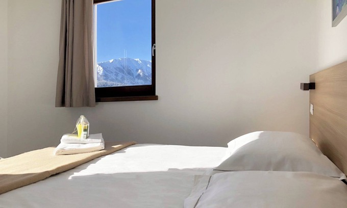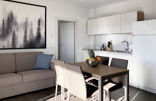 Cozy apartment ideal for up to 4 people, consisting of a double bedroom, a bright living room with large TV and comfortable double sofa bed, modern and fully equipped kitchen, bathroom with shower. The accommodation has a habitable terrace, furnished with table and chairs, perfect for relaxing outdoors and enjoying the beautiful panoramic view. Located on the ground floor, it offers easy access and comfort. Total area: 47 sqm. The amenities of the apartment include: bed linen and towels, foam bath, shampoo, conditioner, hairdryer, safe, Dyson vacuum cleaner, microwave oven, induction hob, waffle coffee machine, toaster, kettle, pots and pans, to ensure a practical and pleasant stay.