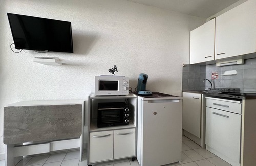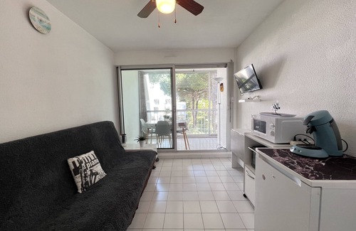 Fancy a getaway by the sea? This charming cabin studio of 19 m2 is the ideal place for a holiday with 2 or small group (up to 4 people, max 2 adults). Located in a residence with elevator and swimming pool, it offers all the comforts to enjoy La Grande-Motte without headache!