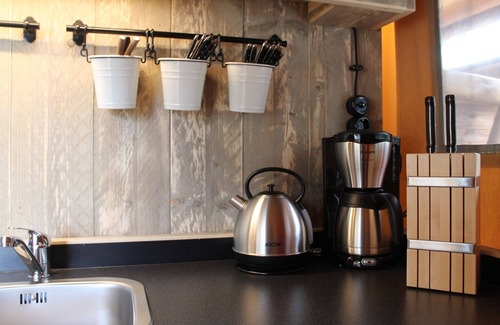 The spacious holiday home has three cosy bedrooms with a total of four beds - two double beds and a bunk bed - and offers space for up to six people. The open kitchen is fully equipped with a refrigerator and freezer, coffee machine, crockery and other practical kitchen appliances, so that you can cook and enjoy together comfortably.