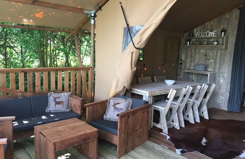 The holiday home has a private terrace of 15 square metres, perfect for relaxed moments outdoors. A parking space directly at the tent ensures convenient arrival. Please note that pets are not allowed in the tents.