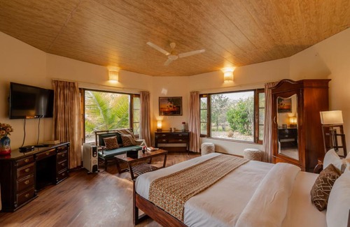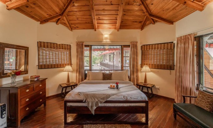 SaffronStays Casa Octavia offers accommodations in Bhīm Tāl, 1.5 miles from Bhimtal Lake. This villa provides a garden. There's an outdoor fireplace and guests can use free Wifi and free private parking. The villa consists of 1 separate bedroom, 1 bathroom, and a living room. The accommodation is non-smoking. The villa has a picnic area where you can spend the day outdoors. Pantnagar Airport is 39 miles away.