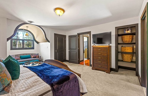 This spacious home in Bolton Landing offers different experiences on each level and accommodates up to 18 guests! It boasts many fun features such as a nostalgic arcade, a 6-person hot tub with an outdoor cedar shower, a sizeable sunk-in fire pit adjacent to the golf course, a wine cellar, a custom bar for those special events, and a home theater with its very own popcorn maker for those rainy nights!