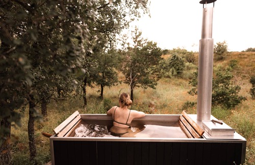 Tucked just behind each cabin, your private wood-burning hot tub is the ultimate nature soak. With just a few logs, it warms up in about 90 minutes. Recline in the built-in wooden loungers and unwind under the sky. Firewood is available at the Clubhouse for $5 per bundle. In the summer, use it as a cool plunge or toss in ice for a DIY cold plunge.