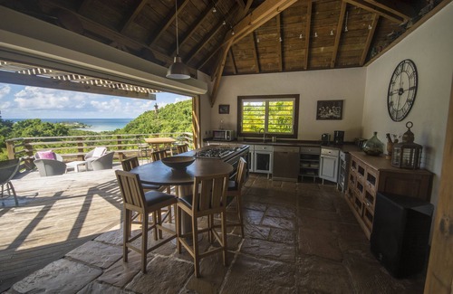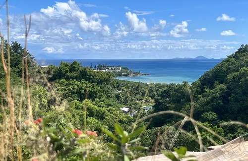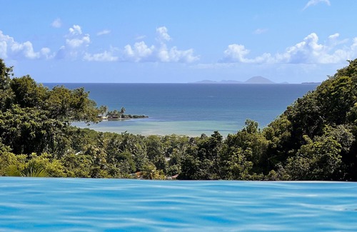 Its 280 m2 built can accommodate 6 people. The living area is open and the view south to the islands of Les Saintes. It has three air conditioned bedrooms, two large, 1 bathroom, 1 powder room. The cuisine is American type, it leads directly to a large terrace deck. 5mlX5ml the pool is overflowing.