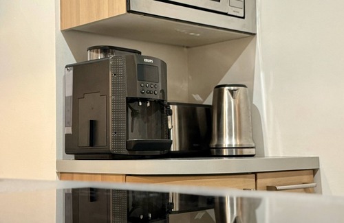 The apartment consists of an entrance with dressing room and bathroom, a fully equipped kitchen (oven, induction hob, dishwasher, microwave, coffee maker, kettle, toaster, washer dryer) and a huge living room bathed without vis-à-vis light thanks to its 4 large windows.