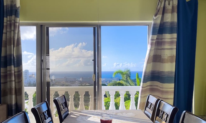 Saipan best ocean view and have privte swimming pool. can cook at villa ,3 beds rooms with 3 private bathrooms ,good for family and business group trip ! by car to Garapan down town only 3 minuts ,walk only 15 minuts .booking 3 days or more days will have free airport pick up service !