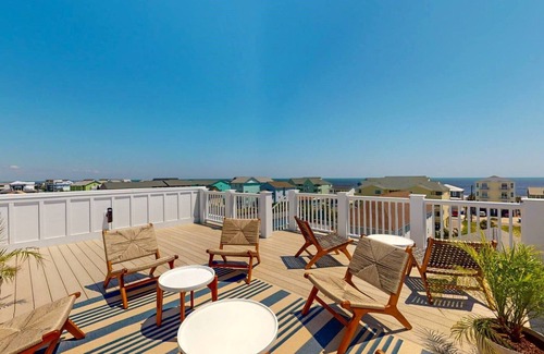Welcome to The Salt House Luxury Vacation Home with Private Pool, Elevator, & Much More!! This brand new, brilliantly designed vacation home is now available for rent as of this 2024 summer season. This 7 bedroom 7 ½ bath, North End, island home is built to sleep up to 26 people with 10 available parking spaces, is ADA compliant with an elevator and has zero entry showers. Each bedroom has its own full bathroom and 6 of the 7 have a separate sitting area with sound proof floors and walls and a 50” inch smart tv (no cable channels provided) in each suite sitting area. USB ports are provided for gaming consoles on all Tv’s in the home. Each floor has its own wireless router with the highest Wifi speed available. The Salt House was built with a reverse floor plan and an incredible rooftop deck with panoramic views of the island. The luxurious gourmet kitchen includes waterfall countertops, 2 refrigerators, a 25 lb capacity ice maker, beverage and wine cooler, a 36” all gas range with 6 burners, Drip coffee maker, Nespresso machine, milk frother, and toaster. Also available for guest use is a spacious laundry room with High Capacity washer and dryer, an ironing board and iron, hairdryers in each bathroom, paper products, trash bags and detergent pods.