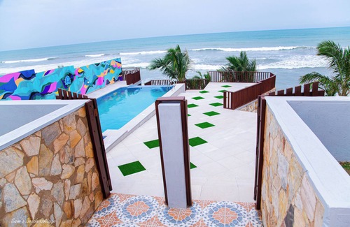 Nestled on a private beachfront in Nyenyano, our cottage is just a 90-minute drive from Kotoka International Airport in Accra. The last 3.5 km to the beach house is an untarred road, adding to the sense of exclusivity. Transportation to and from the cottage can be arranged for an additional fee.
