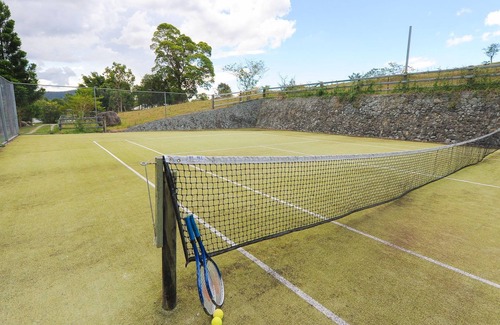 Guests can enjoy a game of tennis on the full-sized court, take a brisk walk through the rolling hills or a gentle stroll on the boardwark round the lake. Beside a sparkling swimming pool, you will find the outdoor entertainment area that has a full kitchen, with fridge, bbq and wood-fired pizza oven.