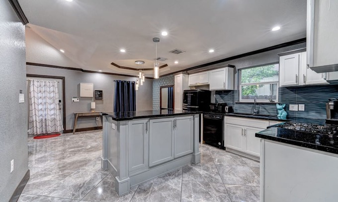 Fully stocked with all of the kitchen necessities you need to prepare a great meal at home. You will find a modern stovetop, oven, and a full-size refrigerator to fix meals for your group. Prep time? The vast kitchen counters offer plenty of granite counter space for all of the chefs in the kitchen. Visit Pearl Farmers Market or a grocery store and then enjoy preparing a delectable meal.