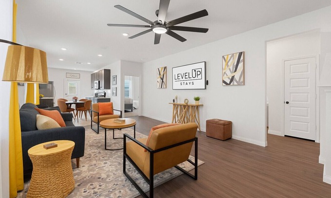 Step into this modern 4-bedroom, 2.5-bath home and instantly feel at ease. You’ll love the bright, open-concept living space designed for both relaxation and connection. Gather with family or friends in the spacious living room, stream your favorite shows on the Smart TV, or share a home-cooked meal around the dining table after preparing it in the fully equipped kitchen. With everything you need at your fingertips, you can focus on making memories instead of worrying about the little details.