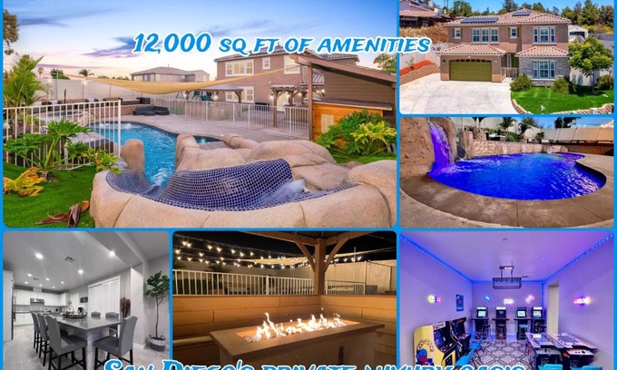 6.2 miles from San Diego State University in Spring Valley, San Diego Luxury Oasis provides accommodations with access to a hot tub, spa center, and public bath. This property offers access to a balcony, free private parking, and free Wifi. The vacation home offers an outdoor swimming pool with a water slide, as well as a sauna and full-day security. Offering a terrace and mountain views, the spacious vacation home includes 6 bedrooms, a living room, flat-screen TV, an equipped kitchen, and 5 bathrooms with a walk-in shower and a hot tub. Featuring air conditioning, this unit has a dressing room and a fireplace. The property has an outdoor dining area. During warmer months, you can make use of the barbecue facilities and eat on the private patio. For guests with children, the vacation home features a children's playground. Guests can also warm up near the outdoor fireplace after a day of fishing. San Diego Zoo is 12 miles from San Diego Luxury Oasis, while San Diego Convention Center is 12 miles from the property. San Diego International Airport is 13 miles away.
