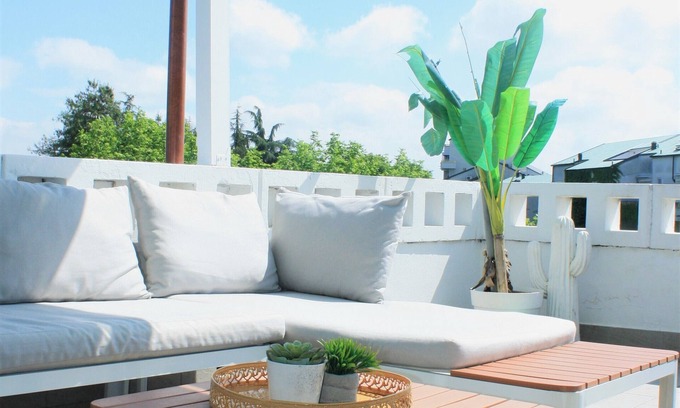 Stay in our cozy rooftop studio with a spacious terrace near Linate Airport in Milano San Felice.