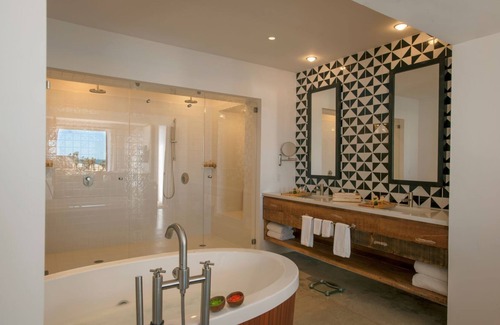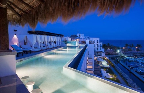 When you stay at this resort, you'll be on the beach, just steps from Puerto Los Cabos and Little Beach. This 4.5-star resort is 0.8 mi (1.3 km) from Puerto Los Cabos Golf Club and 1.6 mi (2.6 km) from Puerto Los Cabos Golf Course. Hotel El Ganzo has its own private beach club and marina, and a rooftop bar that overlooks the bay. It also features an outdoor pool and free WiFi. The property also offers sun terraces, a solarium, and a spa and wellness center with a hot tub and sauna. There is also a fully equipped fitness center. El Ganzo features an art program and a recording studio, plus a library is also available. The Marina Golf Course can be reached in 7 minutes by car, and central San Jose del Cabo is 2.4 mi from the resort.