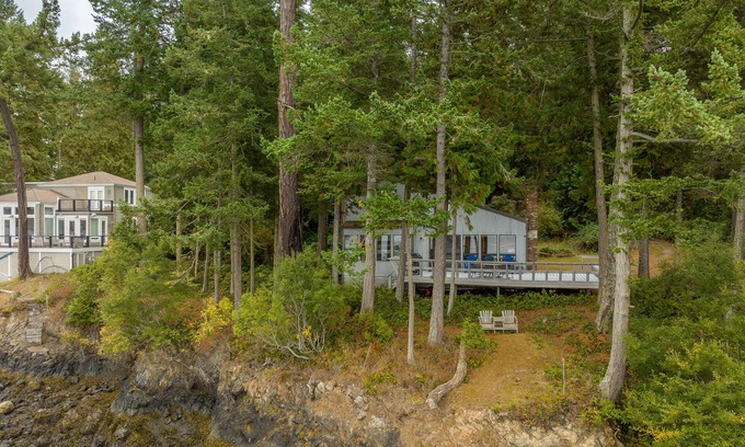 The home is located down a wooded driveway in the desirable Roche Harbor area. The neighboring streets are great for biking and walking while the dining, shopping, and marina activities at Roche Harbor are within a 5-minute drive or easy 20-minute walk.