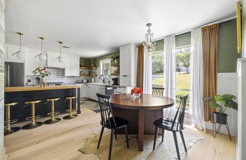 Step into the Roaring Twenties at this fully updated, Gatsby-inspired getaway in San Marcos! This stylish 5-bedroom, 3-bathroom home blends vintage glam with modern comfort. With a private pool, fire pit, grill, Smart TVs throughout, and an indoor entertainment lounge and workout room, it`s perfect for families, group trips, university visits, and weekend escapes.