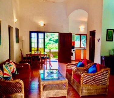 Sana Villa & Resort Anjuna Beach Goa in Anjuna provides accommodations with an outdoor swimming pool and a garden. This apartment provides free private parking, a 24-hour front desk, and free Wifi. The accommodation features airport transfers, while a car rental service is also available. All rooms include a private bathroom, while some rooms will provide you with a fully equipped kitchen. Anjuna Beach is a 15-minute walk from the apartment, while Chapora Fort is 1.6 miles away. Manohar Parrikar International Airport is 16 miles from the property.