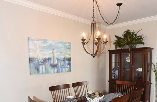 This single story home (1,545 sq. ft) is tranquil, tastefully furnished, and bright. It hosts six comfortably, featuring two bedrooms, two full bathrooms, and den. The master suite offers a king-sized, cozy bed, double walk-in closets, a luxurious soaking bathtub, and separate glass-enclosed shower. The second bedroom has a queen-sized bed. The den is furnished with a plush, queen sleeper sofa--a quaint third bedroom, or additional space for reading or television.