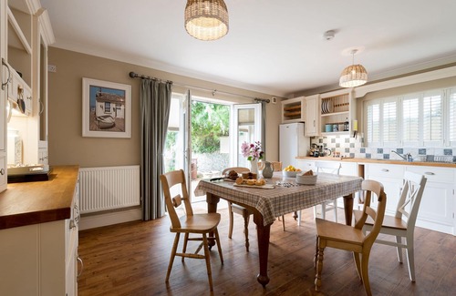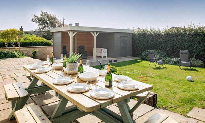 Sand Dollar boasts a private, enclosed garden with ample lawn space, perfect for children and pets to play. The garden includes a patio dining area, a charcoal BBQ, and an open summer house with lockable storage. The garden's tranquillity and beauty make it a perfect spot for relaxation and outdoor activities. There is also ample parking for three cars on the driveway.