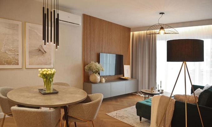 Sand & Wave Apartament is a recently renovated apartment in Dziwnów where guests can make the most of the infinity pool and indoor pool. This property offers access to a terrace, free private parking, and free Wifi. The accommodation offers an elevator and full-day security for guests. The air-conditioned apartment consists of 1 bedroom, a living room, a fully equipped kitchenette with a dishwasher and a coffee machine, and 1 bathroom with a walk-in shower and a hair dryer. Towels and bed linen are offered in the apartment. This apartment is allergy-free and non-smoking. A mini-market is available at the apartment. Guests at the apartment will be able to enjoy activities in and around Dziwnów, like windsurfing, cycling, and hiking. Outdoor play equipment is also available for guests at Sand & Wave Apartament. Dziwnów Central Beach is a 16-minute walk from the accommodation, while Świnoujście Train Station is 24 miles from the property.