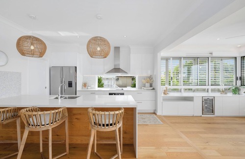 A well-equipped kitchen with filtered water, a butler's pantry, and modern appliances like a Nespresso machine, air fryer, kettle, toaster, sandwich press, and rice cooker ensure all your culinary needs are met. Plus, a washing machine and dryer are on hand for your laundry needs.
